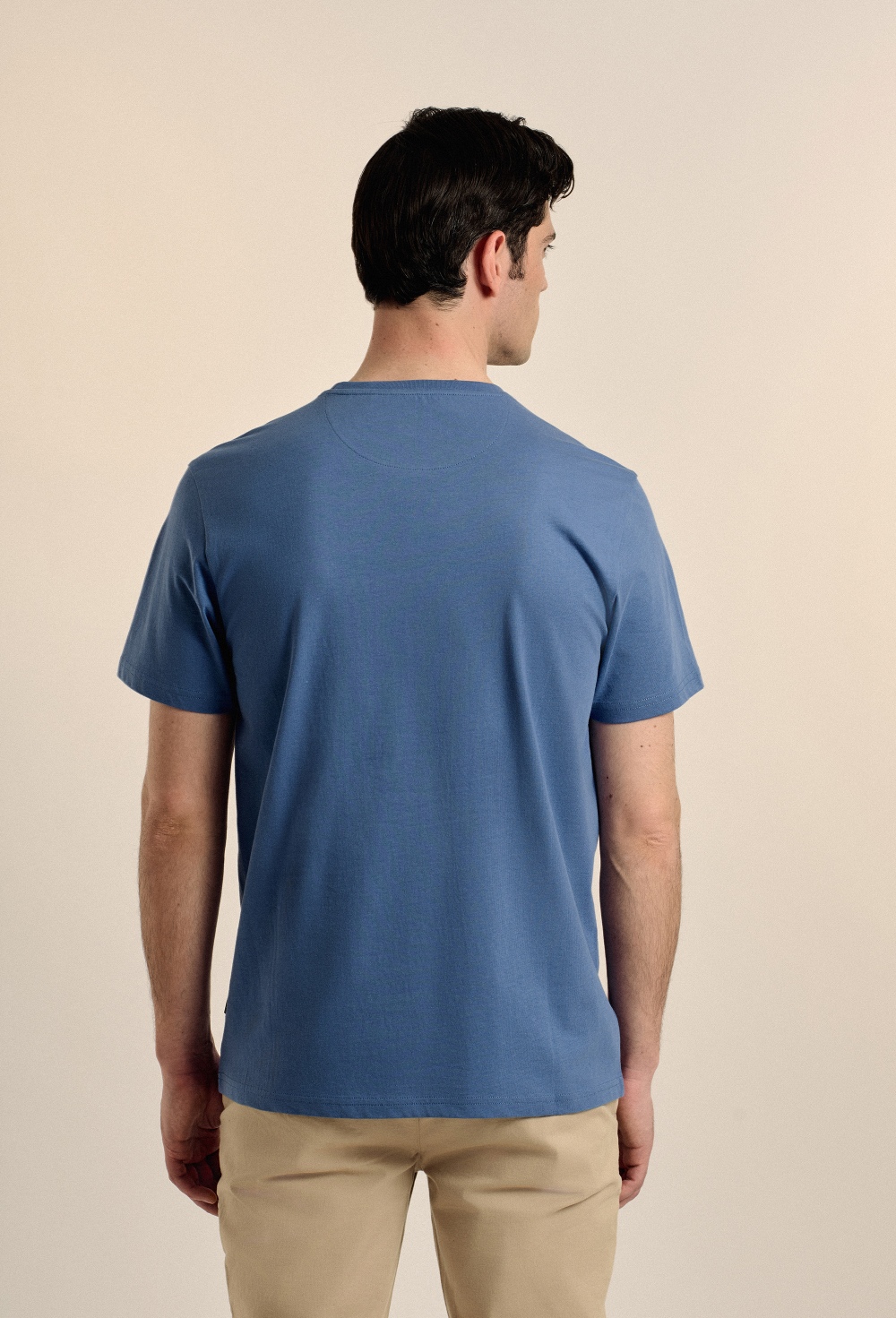 Camiseta de algodón color índigo, regular fit con bordado en el pecho. Cuello redondo y manga corta.